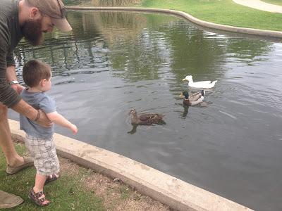 These ducks were a little too enthusiastic... one of them nibbled on his hand a little bit! (he was surprised, but not hurt or upset) |